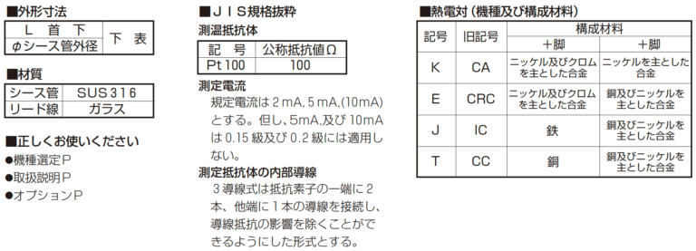 常用600℃以下の温度測定に使用され、感度が高いのでK熱電対についで大量に使用されます。